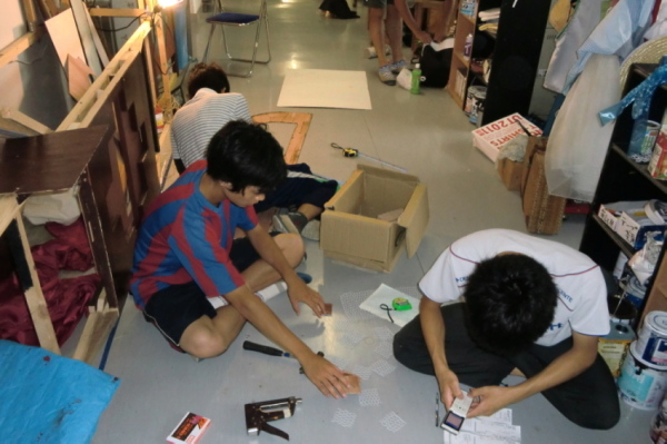写真は内装でのばかりでしたが、同時に廊下や美術室などいろいろなところで文化祭にむけて活動しており、自宅で広報の仕事をやっている人もいます^^