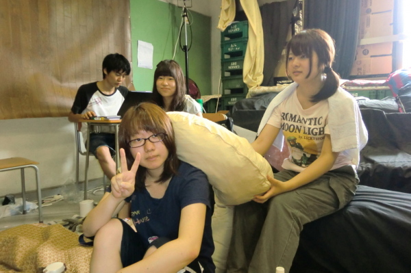 しょーこが垂れ幕制作中。